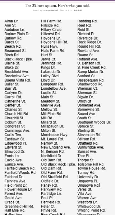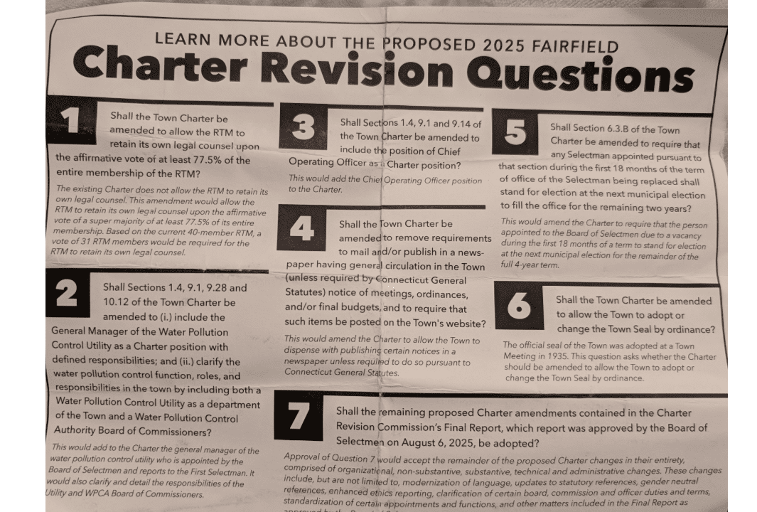I want to cut right to the chase because this is for the election in Fairfield, Connecticut. There’s a lot going on… The town plan has to get rewritten, plus the charter, and the Code.