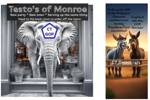 It shows this lack of electoral integrity. Last year in the 21st district ,they allowed the Republican registrar in Stratford to meet behind the scenes in a private meeting with Mario Testa at his Testo’s Restaurant in Monroe. Testa is the poster child for Democratic malfeasance for the last 20 years. Now he’s playing the other side of the street with the Republicans.
