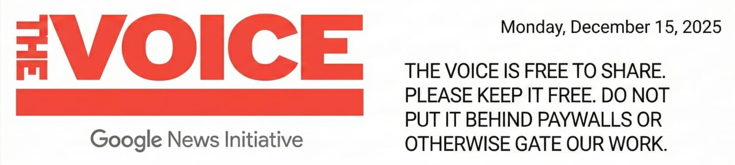 The revolution is brought to you by Google. The Voice ascribes to the principles of Google’s Local News Initiative, which values transparency and equality. Almost all our research is conducted through public records and we don’t conduct interviews, except for fact checking. The only quotes we use are from our Shakespeare insult mug on the Op Ed page